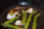 Coupez les oignons nouveaux en 2, faites chauffer l'huile d'olive dans une poêle et faites revenir les oignons avec les asperges cuites à la vapeur.