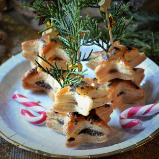 🐟 Bouchées feuilletées au lieu jaune, crevettes et champignons – env. 3,50 € / pers.