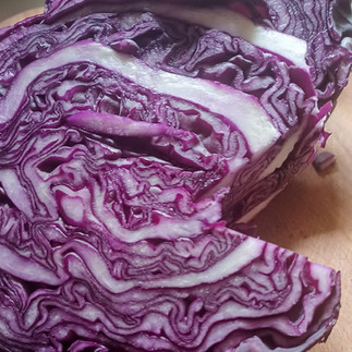 Le chou rouge, pourpre et croquant, s’invite dans une salade automnale aux pommes, noix et grenade.